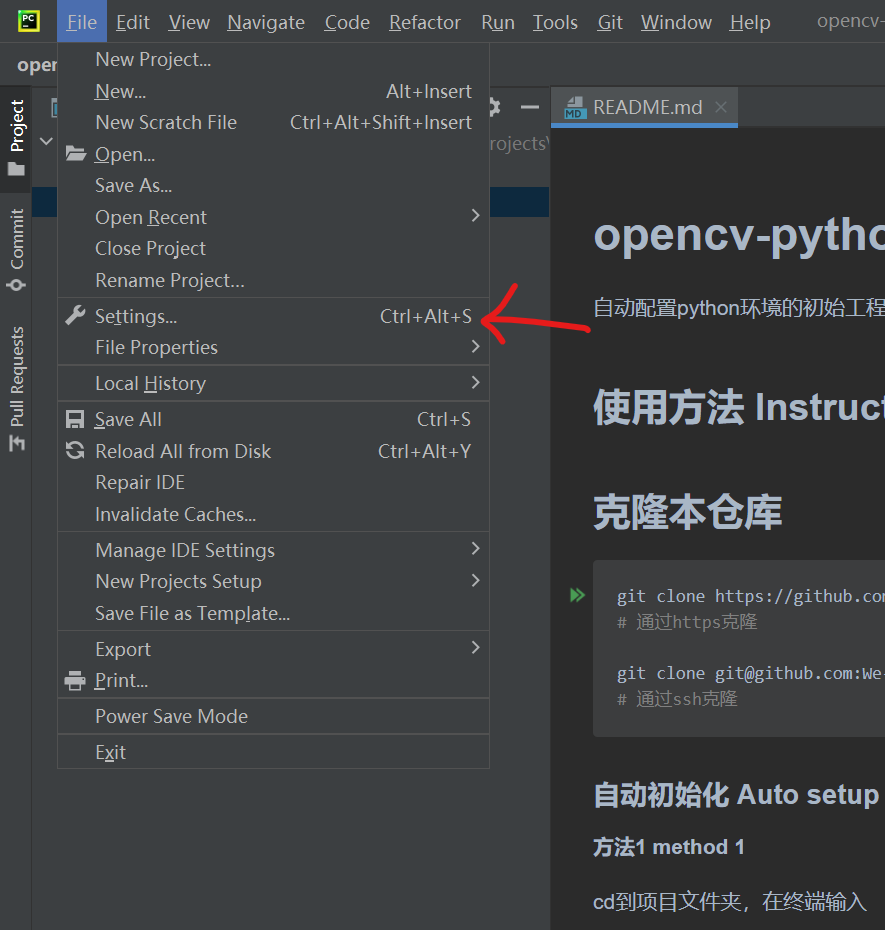打开仓库文件夹后,第一次会提示配置虚拟环境,请直接点击Cancel取消