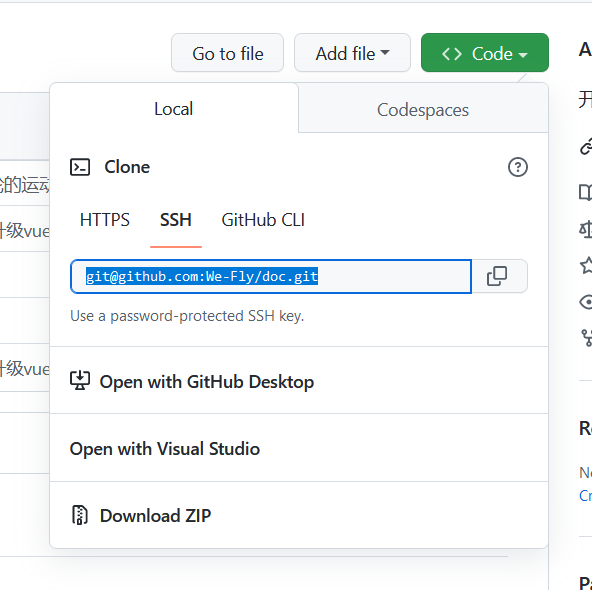 对了,到这边你的仓库克隆的时候就可以使用ssh方式了。