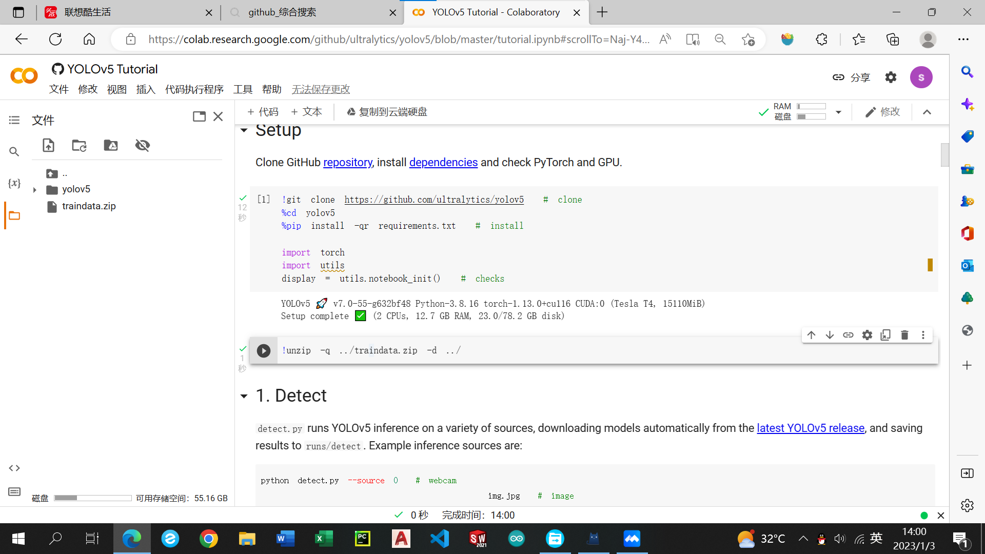 注意:可能会出现cannot find traindata.zip之类的问题报错,没有什么很好的解决办法只能刷新左侧文件页面或者主页面。